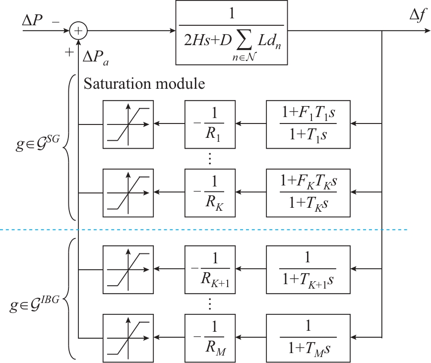 Abstract:Future power systems will be characterized by low levels of inertia and limited frequency regulation capacity due to the widespread use of renewable energy sources. Furthermore, the response of different types of loads to system disturbances significantly affects the frequency dynamics. To address these issues, this paper proposes an aggregated system frequency response model considering load dynamics. Initially, a dynamic model of different loads is established, followed by the derivation of a small-signal load model that affects the active power imbalance of the system. The active power variations of loads are categorized into three components: load voltage dynamics, load frequency dynamics, and load inertia contribution. These components are incorporated into the system frequency response model, which accounts for load active power dynamics. The final output is an aggregated reduced-order system frequency response model, where the aggregation is primarily weighted by the primary frequency regulation capability of the load, load capacity, and rotor kinetic energy. Finally, the accuracy and effectiveness of the proposed model are validated using the WECC 9-bus test system with power electronic sources, and the influence of load parameters on the frequency stability indicators is analyzed.
