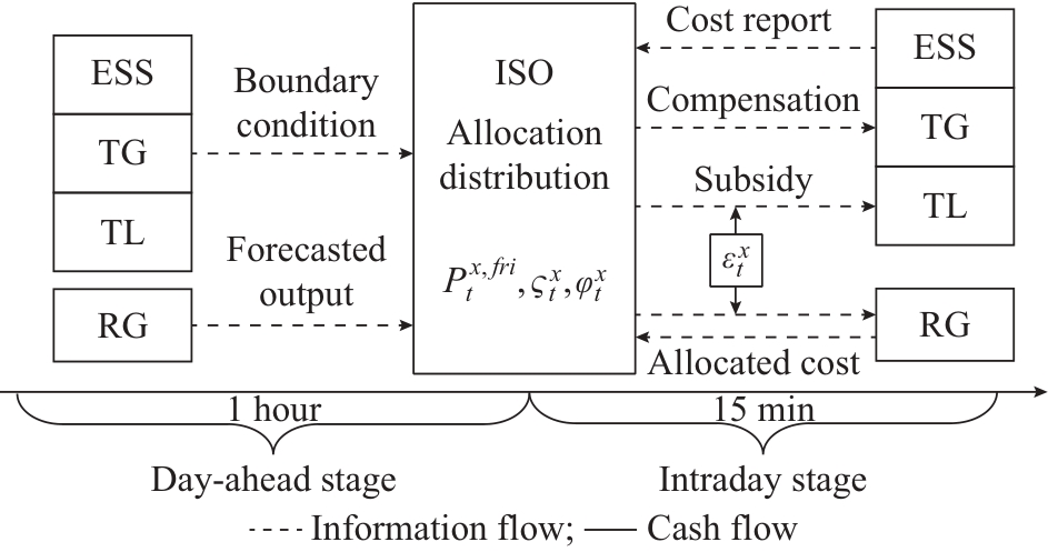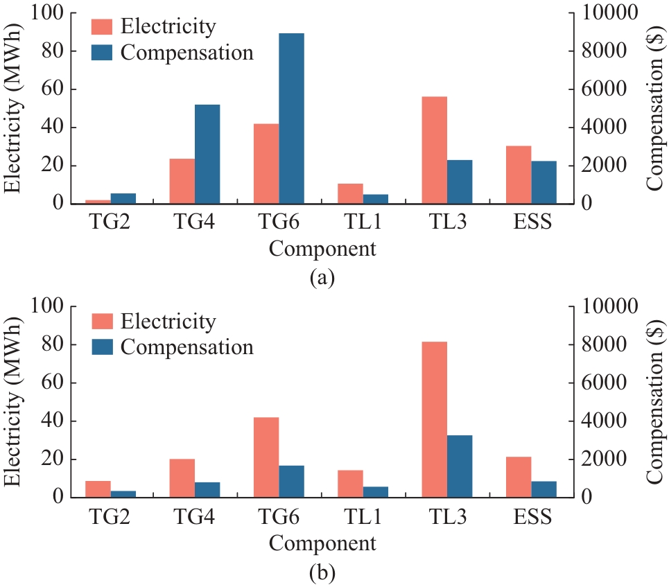 Abstract:As the share of renewable generations (RGs) in power systems grows, the demand for peak regulation has increased, leading to higher associated costs. In this paper, we propose a mechanism for allocating peak regulation cost among RGs and distributing compensation among peak regulation resources (PRRs). This mechanism is integrated into a coordinated generation scheduling model to enhance the economic efficiency of independent system operators (ISOs) and incentivize PRRs. First, we propose a model for peak regulation cost of diverse PRRs. Next, we develop a method for constructing an RG output curve that facilitates peak regulation. The waveform difference between this constructed curve and the RG forecasted output curve is then calculated. In addition, we create a mechanism for peak regulation cost allocation and compensation distribution that incorporates the waveform difference, the peak regulation contribution of PRRs, and participant satisfaction as key indicators. We then establish a coordinated generation scheduling model using this mechanism, which is solved through the column-and-cut generation algorithm and rolling optimization. Finally, we conduct case studies based on an improved IEEE 30-bus test system and perform several comparative analyses to validate the effectiveness of the proposed mechanism and coordinated generation scheduling model.