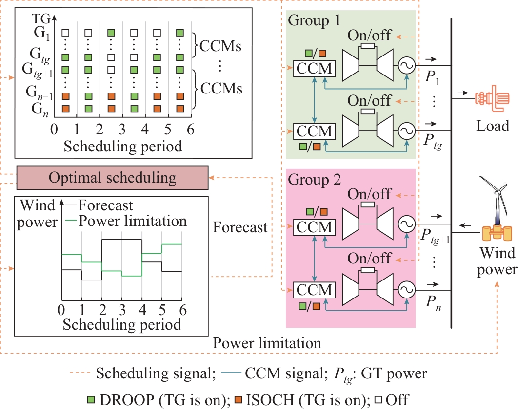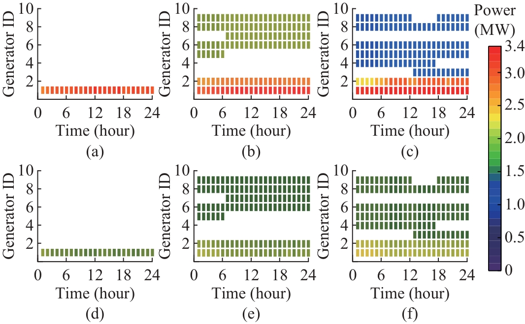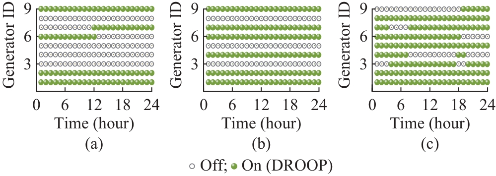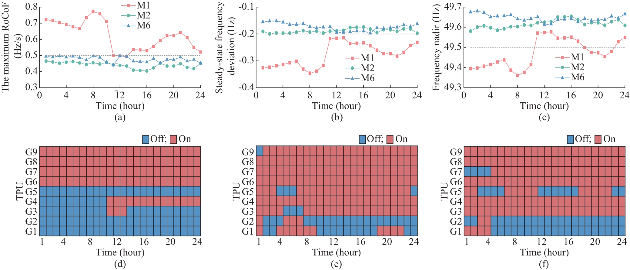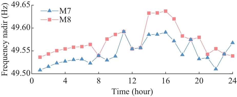 Abstract:The high share of intermittent wind power jeopardizes system frequency security in isolated offshore field microgrids (IOFMs). Existing scheduling strategies, mainly focusing on stable energy supply and demand, fail to ensure frequency security due to the limited flexible and dispatchable resources in the IOFM. Thus, this paper proposes an optimal scheduling model of wind power generators with unified frequency response and spinning reserve constraints to assist operators in efficiently managing turbine generators. Frequency security indices are introduced to quantify the impact of both sudden wind power shortages and continuous wind power fluctuations on the frequency dynamics under different control modes. Based on these indices, unified frequency response and spinning reserve constraints are analytically derived to support the optimization of the control mode and on/off status of wind power generators. These highly nonlinear unified constraints are then reformulated as mixed-integer linear constraints, which are integrated into the scheduling model with operating costs as the objective. The proposed model is tested using a modified real-world IOFM. The results demonstrate that the proposed model not only ensures system frequency security but also reduces operating costs and carbon emissions.