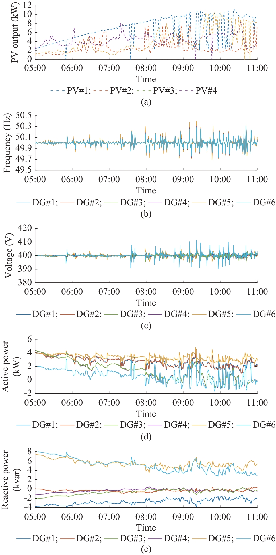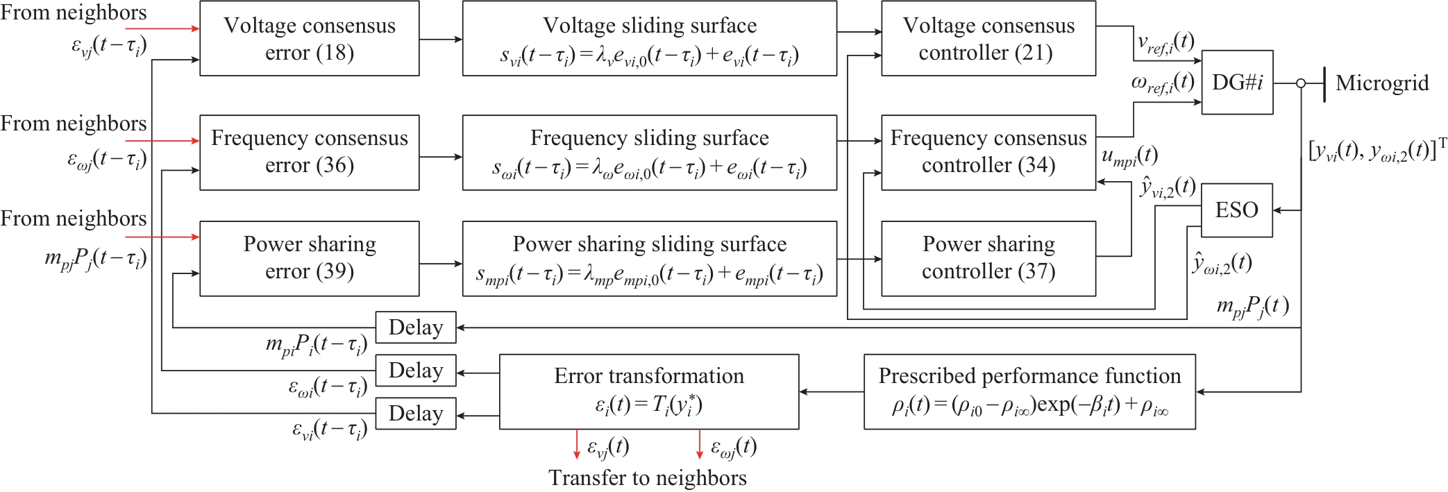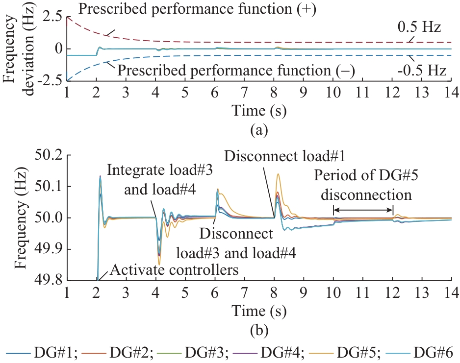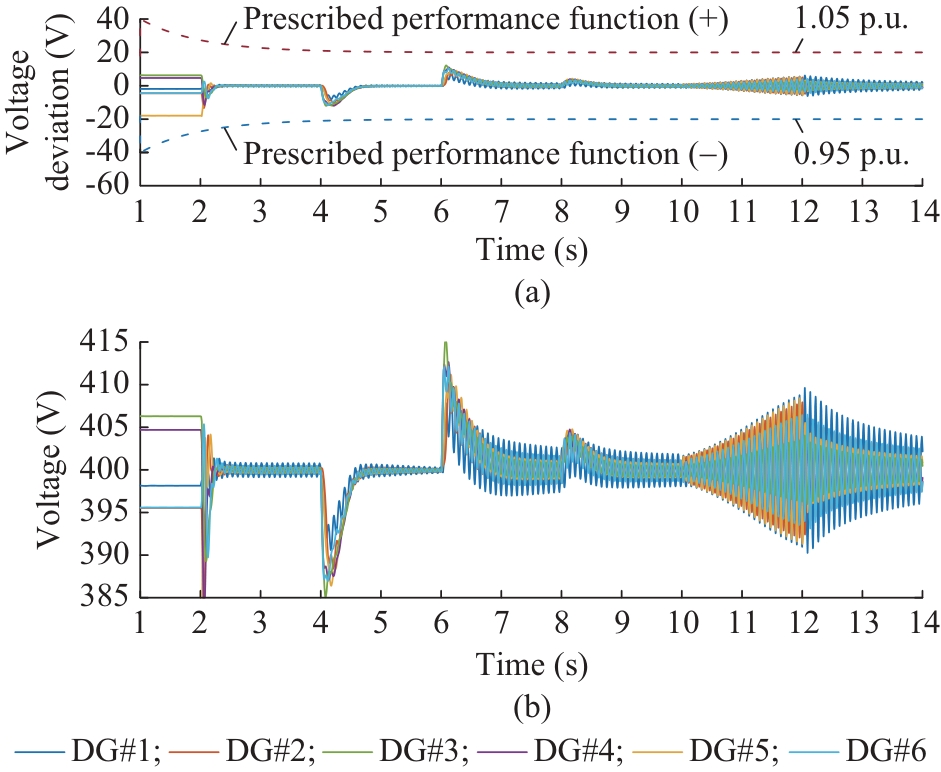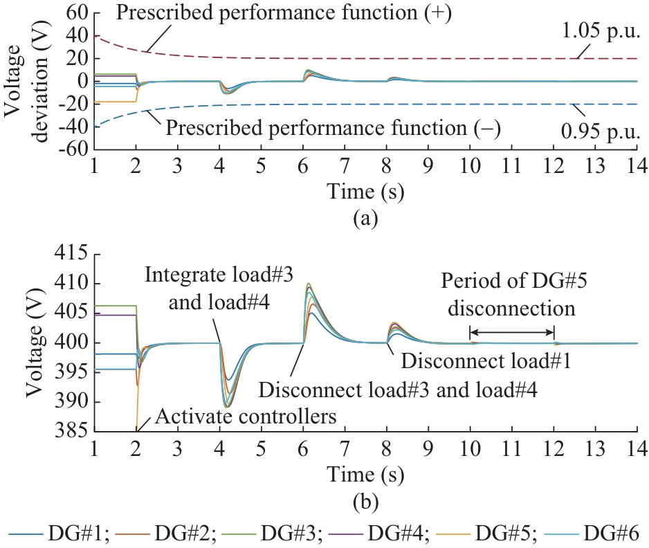 Abstract:For providing a reliable power supply in an islanded AC microgrid, it is crucial to ensure that the operating states meet the safety constraints. However, conventional distributed secondary control methods often struggle to handle voltage and frequency constraints, limiting their practical applicability. To address these limitations, this paper proposes a novel prescribed performance control (PPC) based distributed secondary coordination method for islanded AC microgrids. The proposed method introduces a systematic framework that integrates bijective transformation with distributed secondary control. In this framework, the constrained distributed voltage and frequency control problems can be transformed into unconstrained ones, enabling strict adherence to predefined performance boundaries. Additionally, Lyapunov-Krasovskii functional analysis is employed in this paper to ensure asymptotic stability and calculate the stable boundaries in the transformed error space under time-delay conditions. The effectiveness of stability recovery and prescribed performance is tested in both MATLAB/Simulink and RTLab-based hardware-in-the-loop (HIL) experimental environments.