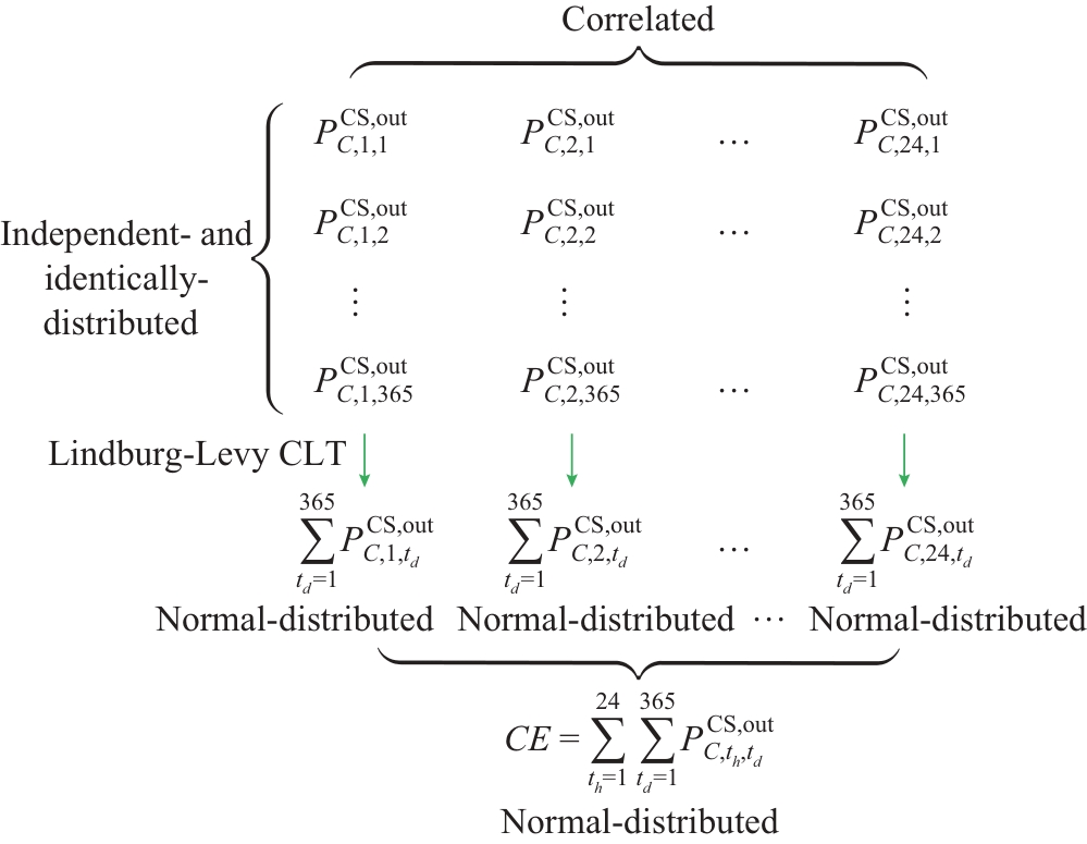 Abstract:Optimal capacity configuration (OCC) of large-scale energy bases with multi-timescale operation characteristics presents a critical challenge. To address the problem, this study proposes an OCC approach of large-scale energy bases considering external multi-stochastic scenarios and interactive multi-timescale objectives. Firstly, guided by the system theory, the nonlinear state-space description is presented for systematic analysis of a general large-scale energy base. Due to interactive multi-timescale objectives between annual and daily cumulative objectives, a nested optimization structure is established. Then, considering the external multi-stochastic scenarios caused by the variables such as wind speed, solar irradiance, electric load, and thermal load, a multi-step optimization strategy is proposed including pre-configuration in regular scenarios and re-configuration by introducing micro-incremental scenarios. The multi-step optimization strategy and nested optimization structure jointly achieve the OCC of the large-scale energy base. In each step, the nested optimization structure is executed once. Finally, while ensuring the balance between thermal supply and load demand, the imbalances between electric power supply and the load demand are eliminated, significantly showing the efficiency of the proposed OCC approach.